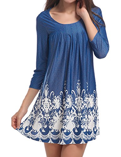 SeSe Code Women's Scoop Neck Floral Printed Long Tunic Casual Sleeveless Swing Dress Specification: Material: 95% Polyester, 5% Spandex