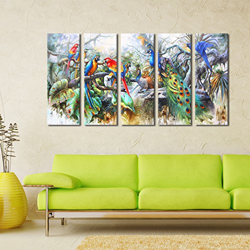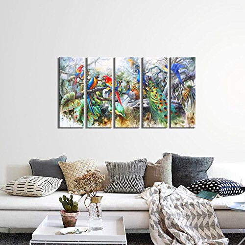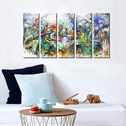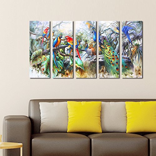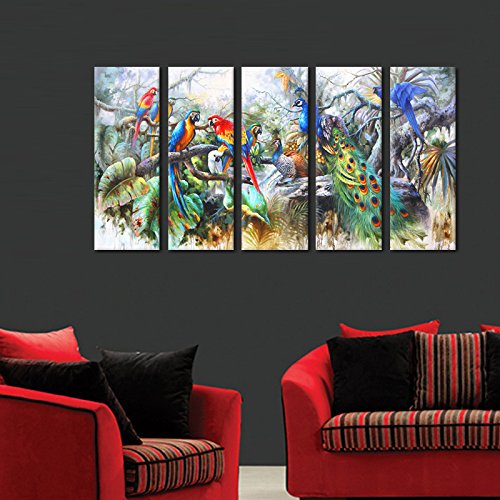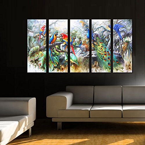 -. Title : JoyArt -Peacock Painting Parrots Picture Canvas P.R.Int on Canvas Wall Art for Home Decorations Artwork Stretched, Ready to Hang, 5pcs/set