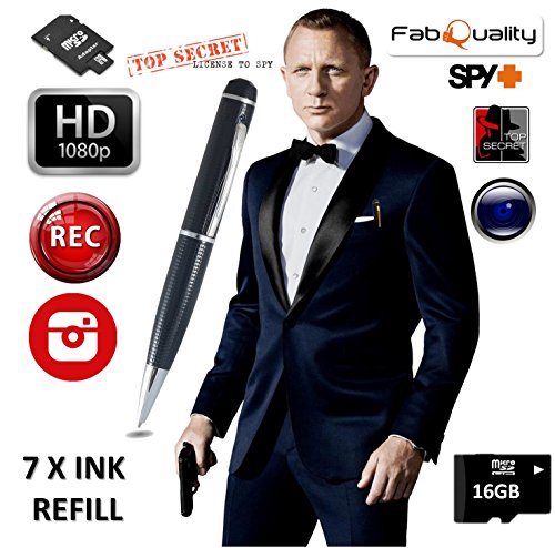 bQuality 1080p HD Hidden Camera Spy Pen BUNDLE 16GB SD Micro Card + USB card Reader + 7 INK FILLS + updated battery + USB Plug! - Record Executive Multifunction DVR. Perfect Gift - Easy to Use