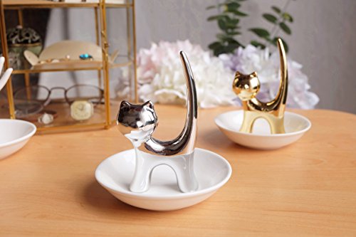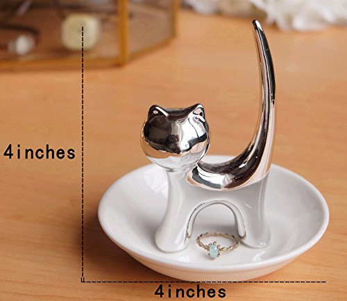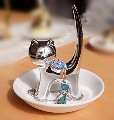 Eastyle Silver Long Tail Cat Ring Dish Holder Jewelry Trays For Earrings Necklace Bracelet Organizer Display