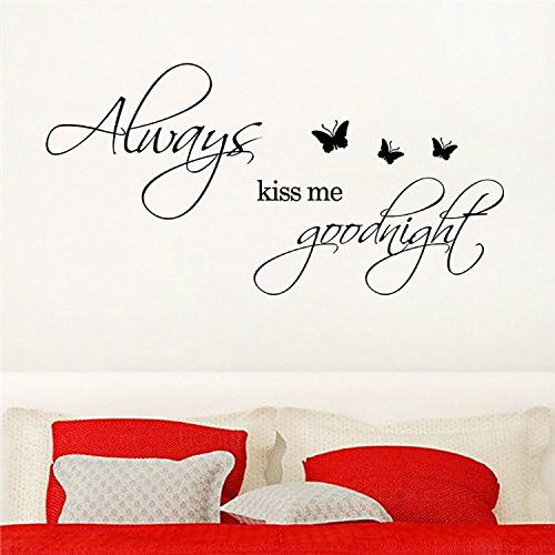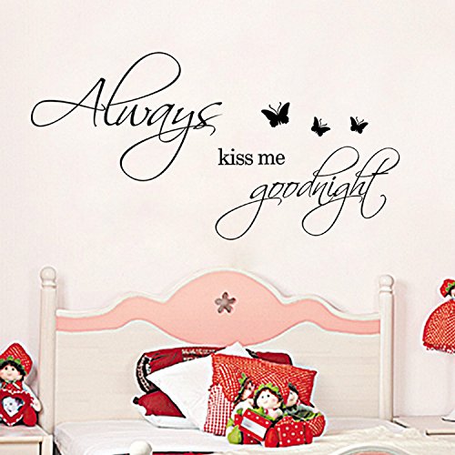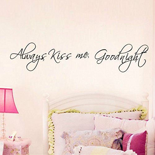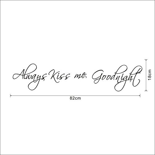 -. Binding : Kitchen -. Brand : WOWStickers -. Feature : WOW!STickeRs Black Always Kiss Me Goodnight Wall Decal Sticker Home Art -. Label : Other -. Manufacturer : Other -. ProductGroup : Home -. ProductTypeName : HOME -. Publisher : Other -. Studio : Other -. Title : WOWStickers Black Always Kiss Me Goodnight Wall Decal Sticker Home Art (BLACK, 1)