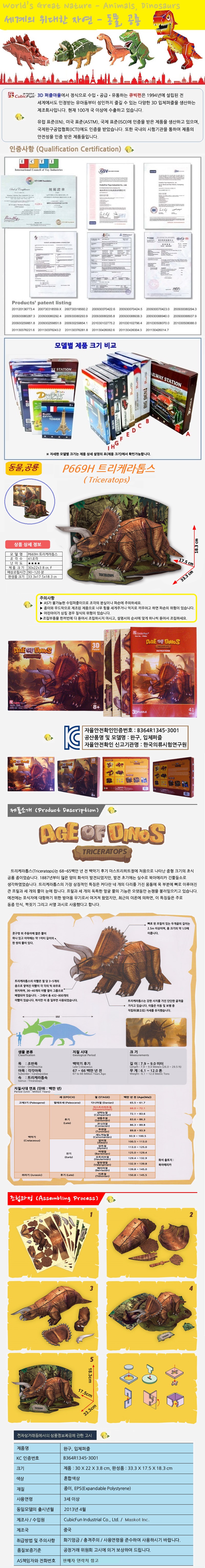 3D stereoscopic puzzle Triceratops P669h Dinosaur Fit