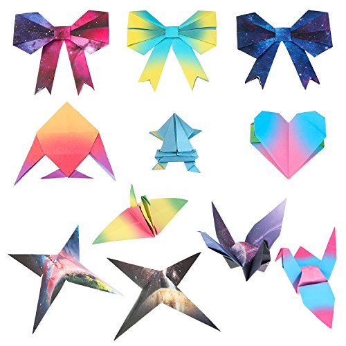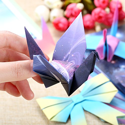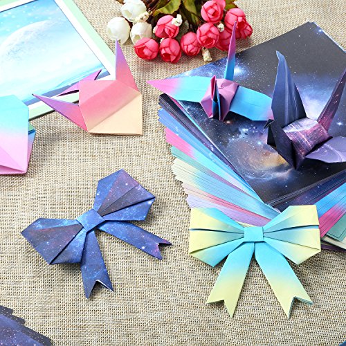 Size: beautiful sky origami paper size is 5.9 x 5.9 inch/ 15 x 15 cm; Gradient colors origami paper is 5.6 x 5.6 inch/ 14.3 x 14.3 cm, square shape for convenient folding, without annoyance from extra paper dust while folding