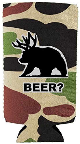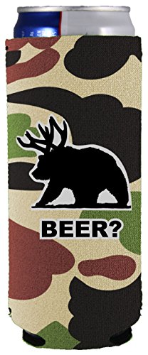 Coolie Junction Beer Bear Funny Slim Can Coolie (Camo)