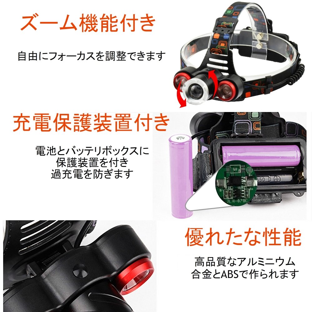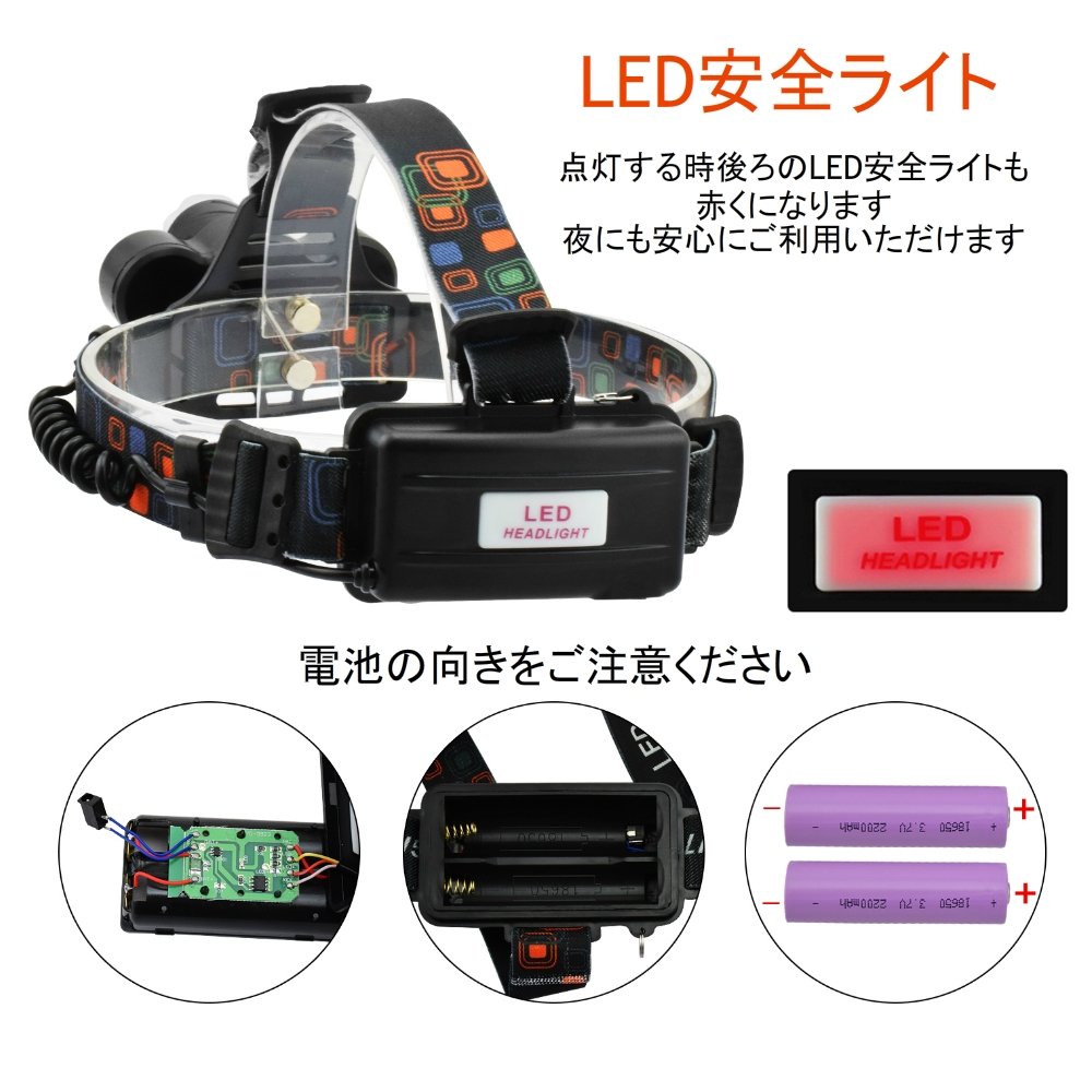 High quality T6 LED + 2 Leits LED head light, Because it is level of life waterproof, please refrain from putting in water