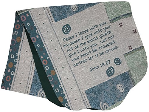 Studio : Manual Woodworkers Weavers Publisher : Manual Woodworkers Weavers Binding : Health and Beauty Product Description Manual Tapestry Funeral Memorial Scarf, Peace I Give Unto You in shades of White, Pink, Blue, Green. Reverses to Green diamond pattern Damask. John 14:27 - Peace I leave with you, my piece I give unto you. Measures: 72x17". Remember loved ones and express an inspirational message in times of need. Loving words and touching sentiments help heal the heart and lay the roots to solace. The memorial scarf features a touching sentiment to drape across a casket or supplement a bereavement arrangement. This beautifully woven tapestry creates a tenderhearted and nostalgic display as a Tablerunner for special services or daily use. John 14:27 is inscribed on both ends of the runner. Manual distinctive textile products are proudly Made in the U.S.A. We are dedicated to providing quality products that lessen the impact on the environment and promote sustainability. Since 1932, Manual Woodworkers and Weavers has been a family-owned company, creating wonderful textiles, gifts, and home decor in the mountains of North Carolina, working to bring their customers the best quality goods at fair prices. Colors pictured may vary slightly due to monitor setting. 0