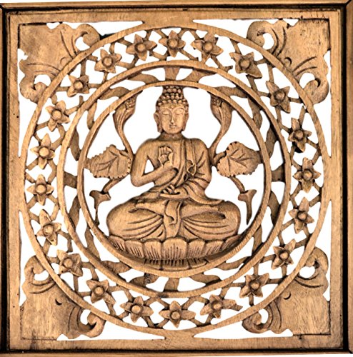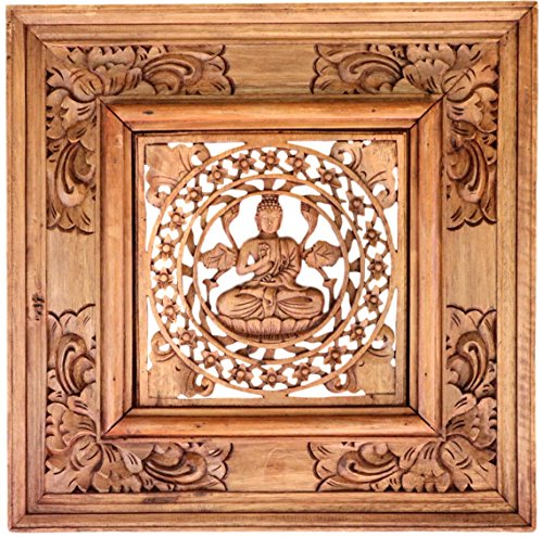 Handmade Wood Carved Buddha Sculpture Wall Art