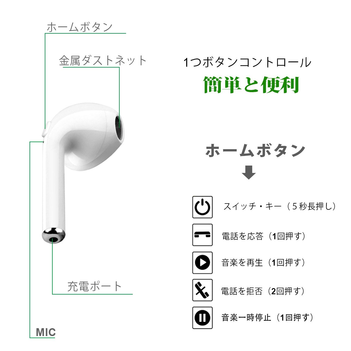 Unlike many earphone earphone designs, this earphone adopts a one button design, all operations can be completed with this button.