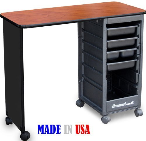 Studio : Dina Meri Publisher : Dina Meri Product Description Made in USA! By Dina Meri leader in Salon equipment manufacturing FEATURES: CABINET IN HIGH IMPACT ABS PLASTIC CONSTRUCTION, 4 assorted trays, Tween Hooded casters for easy mobility, TOP FEATURES: Large work surface in High pressure Cherry laminate, Overall Dimensions: 16"D x 36"W x 30"h Weight: 30 lbs. ECO friendly 100% Recyclable ABS PLASTIC with a Scratch Smear Resistant Textured Finish, FOR ACCESSORIES AND REPLACEMENT PARTS PLEASE VISIT DINAMERI.COM 0