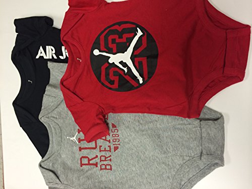 -. Title : Baby Boy's Air Jordan Bodysuit 3 Pack Navy, Grey, Red 3-6months
