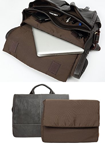 -. Brand : sulandy -. Department : mens -. Feature : Made of leather for durability / Multiple color options available to coordinate with accessories,Leather flap with two push-lock closures for security / Front and open side pockets for storage / Padded sleeves to safely hold a laptop,Adjustable cross body shoulder strap for effortless carrying -. ProductGroup : Apparel -. ProductTypeName : LAGE -. Title : Sulandy Men Vintage Leather Flap-Over Laptop Shoulder Messenger Bag Briefcase