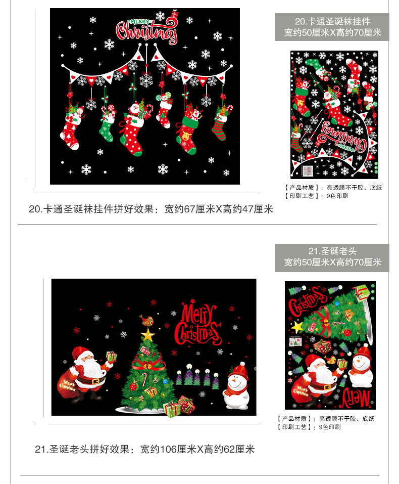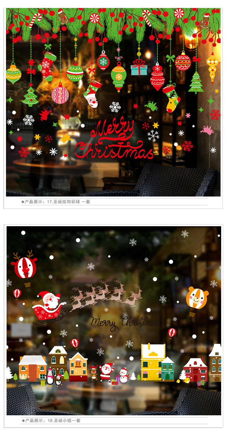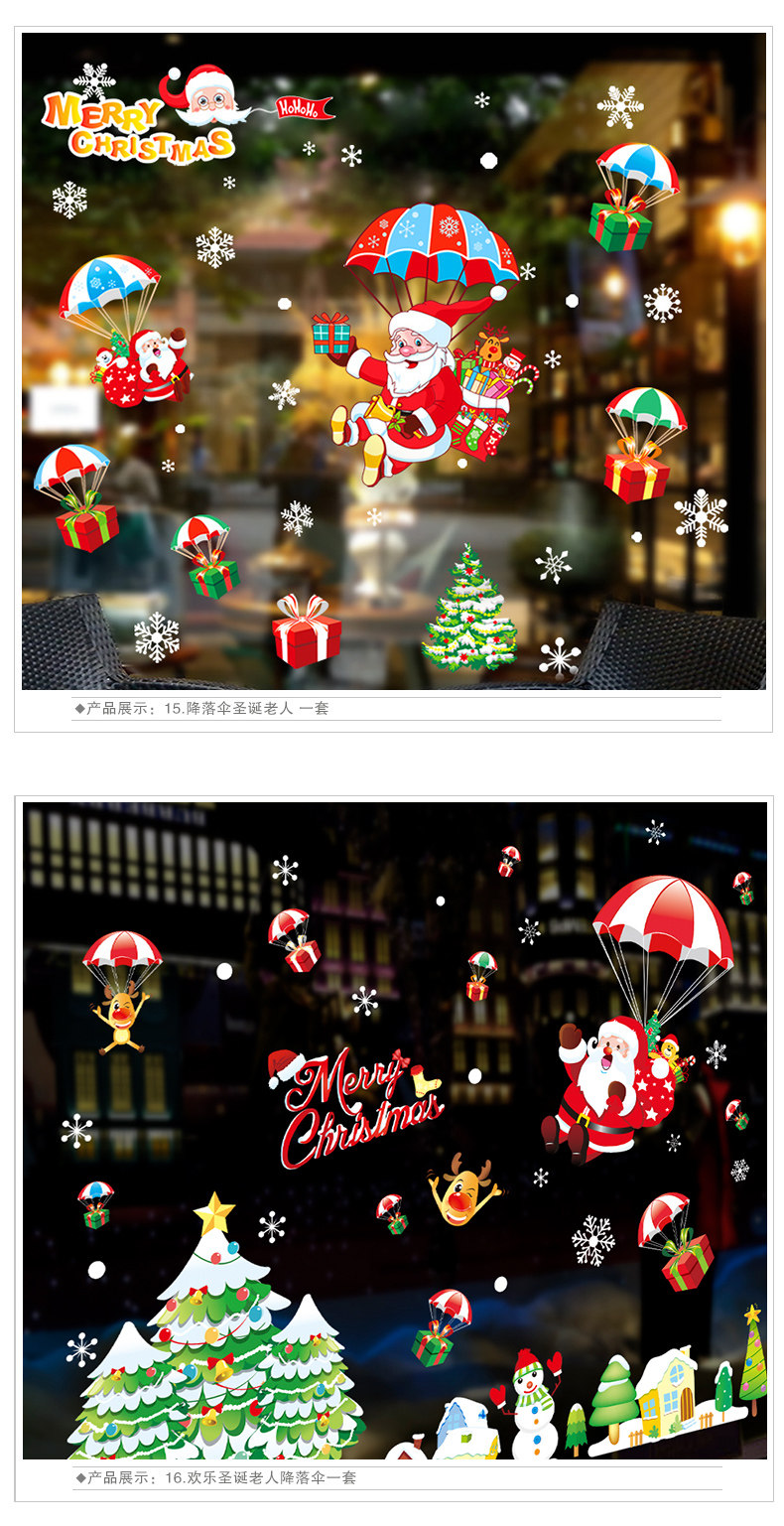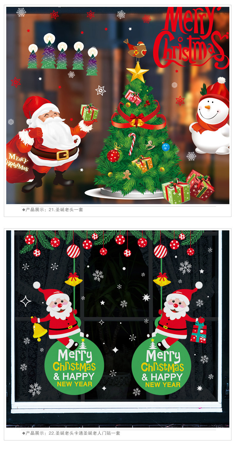 圣诞节装饰用品橱窗玻璃贴纸墙贴场景布置树挂件雪花老人礼物贴画
