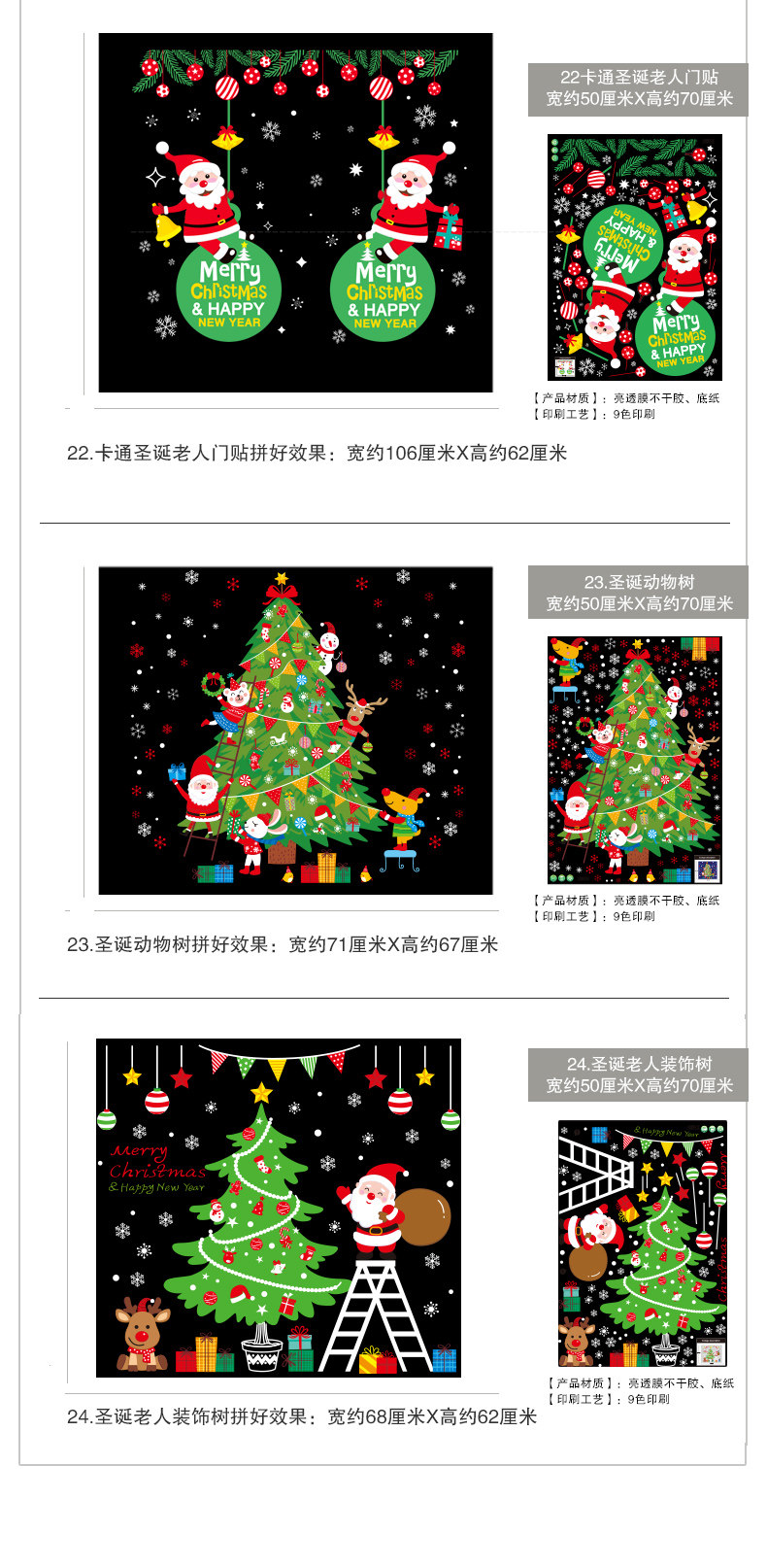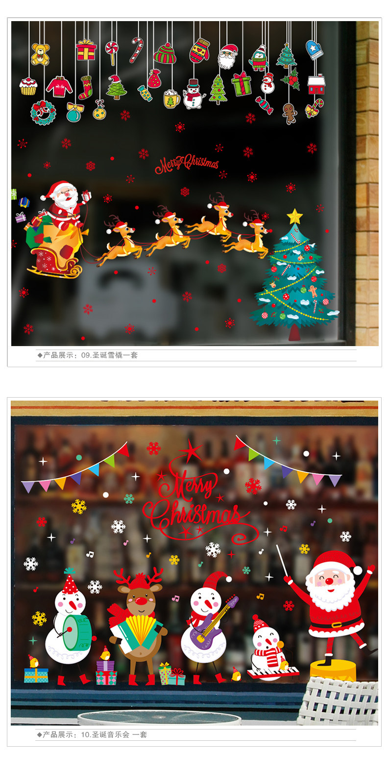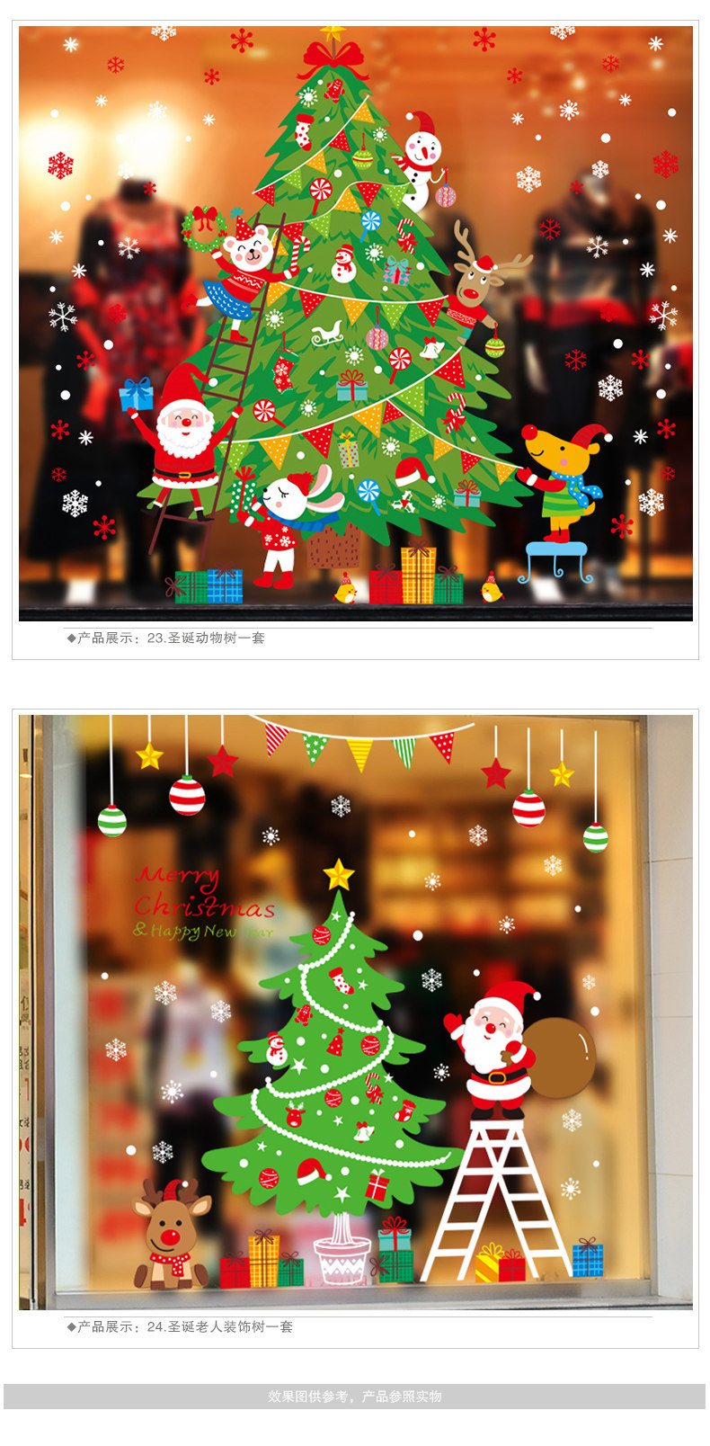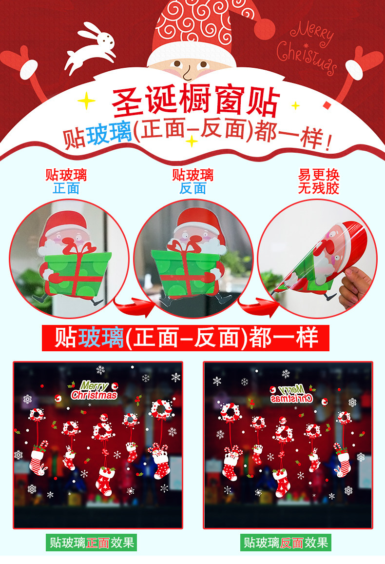 圣诞节装饰用品橱窗玻璃贴纸墙贴场景布置树挂件雪花老人礼物贴画