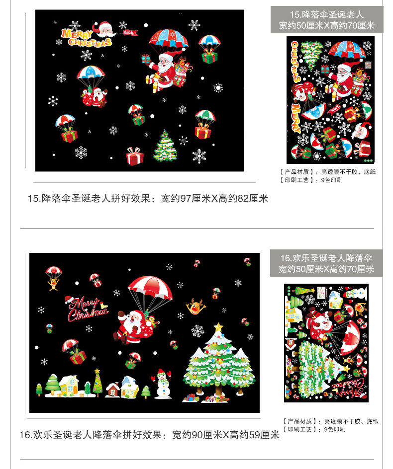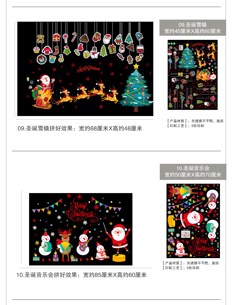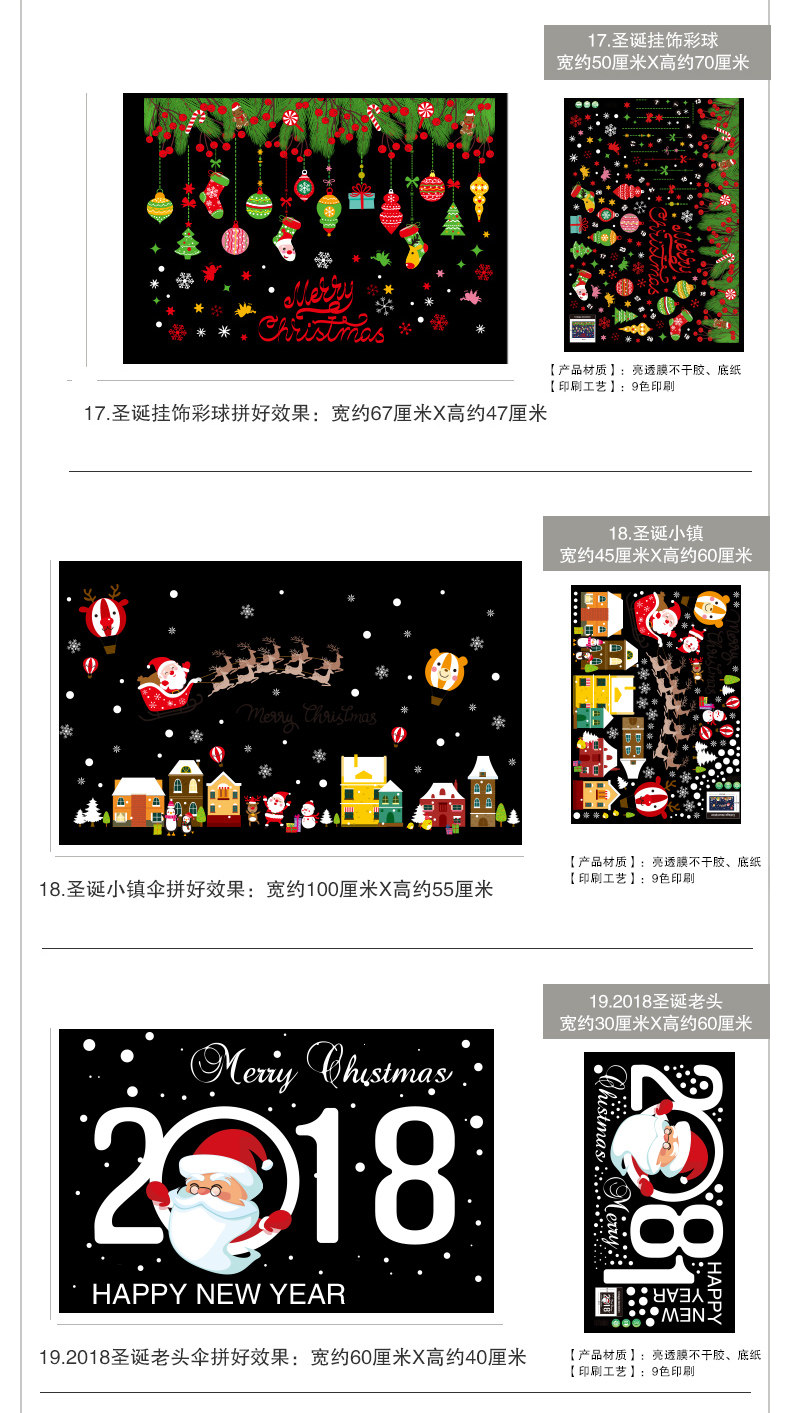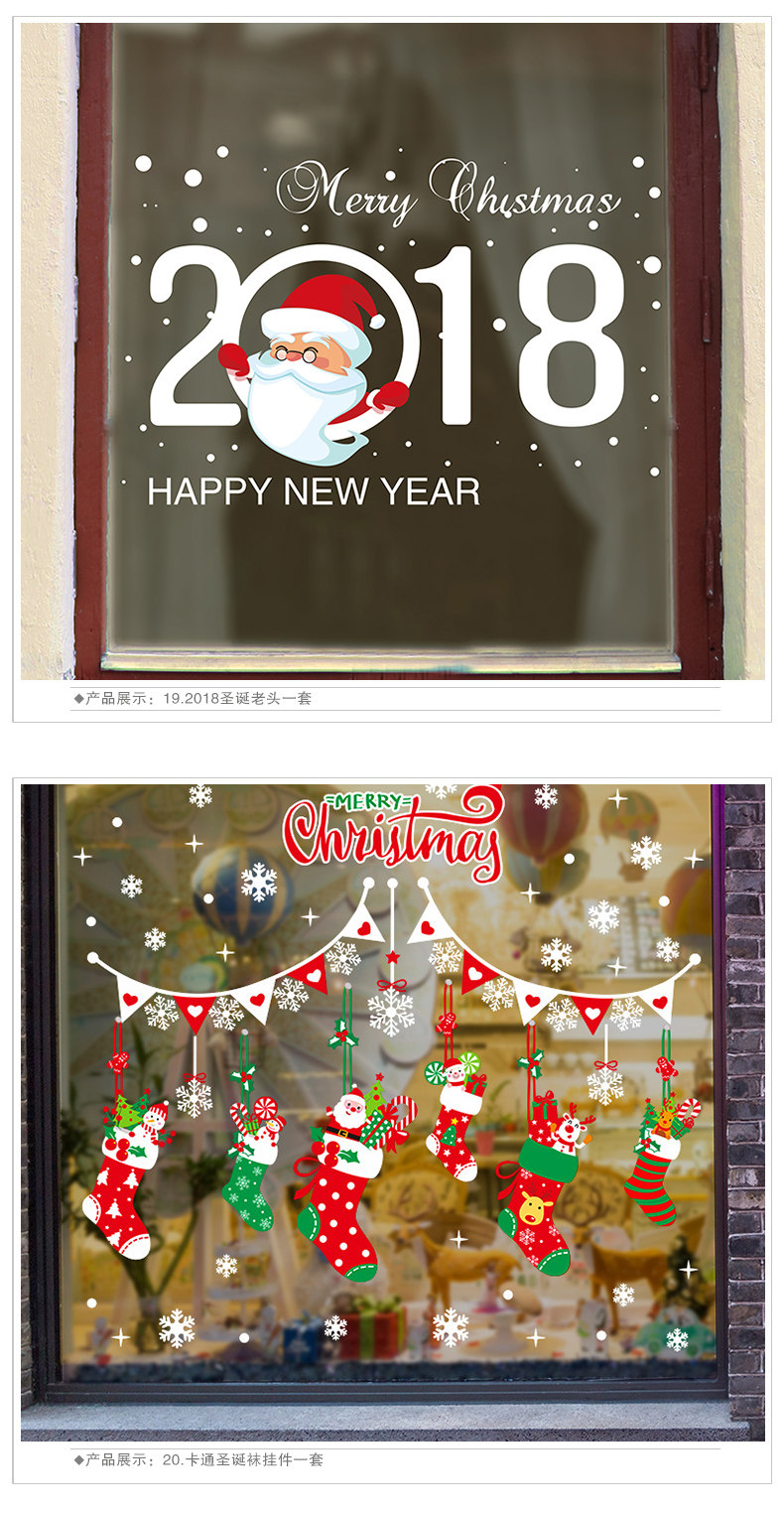 圣诞节装饰用品橱窗玻璃贴纸墙贴场景布置树挂件雪花老人礼物贴画
