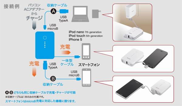 ※iPad、microB以外の端子を使用する機器を充電する際は別売りケーブルが必要です。