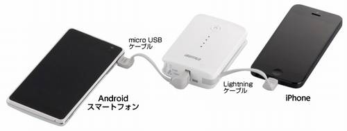 ???Lightningコネクターとmicro USBコネクターで独立して出力することが出来るため、iPhoneとAndroidスマートフォンを同時に充電する事が可能です。