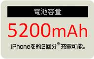 ???安心の大容量5200mAhでiPhone5を約2回分急速充電可能。iPhoneやスマートフォンのバッテリー切れを気にせず安心して使用できます。