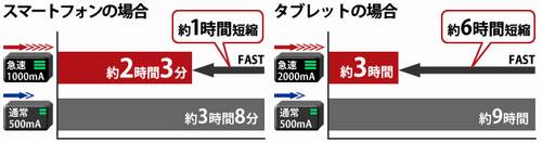 ■ 2.1A出力対応でタブレットなどスマートフォン以外の機器にも対応
