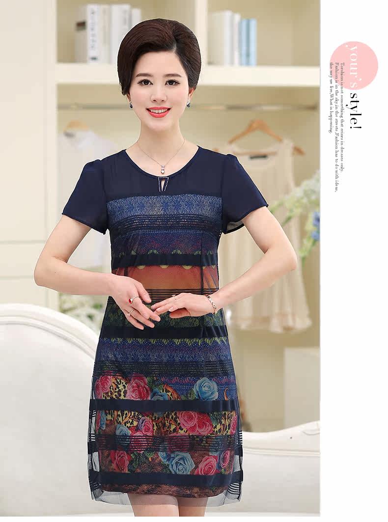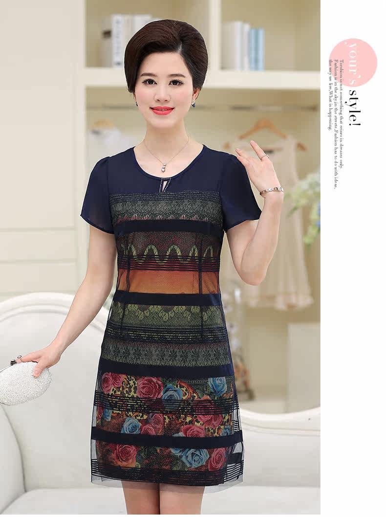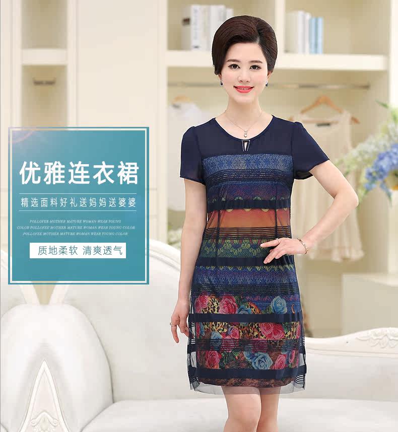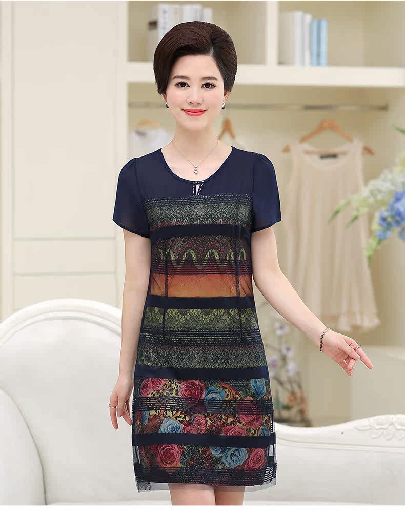 中老年女装夏装连衣裙中年女装夏季裙子40-50岁妈妈装圆领裙子