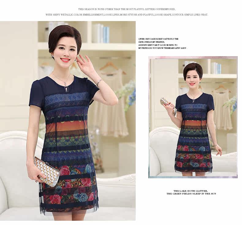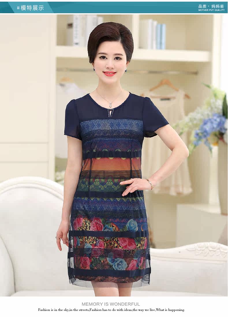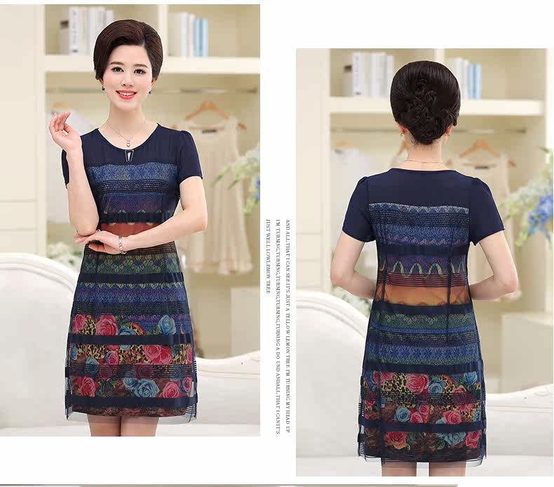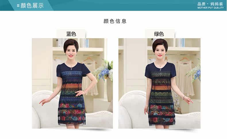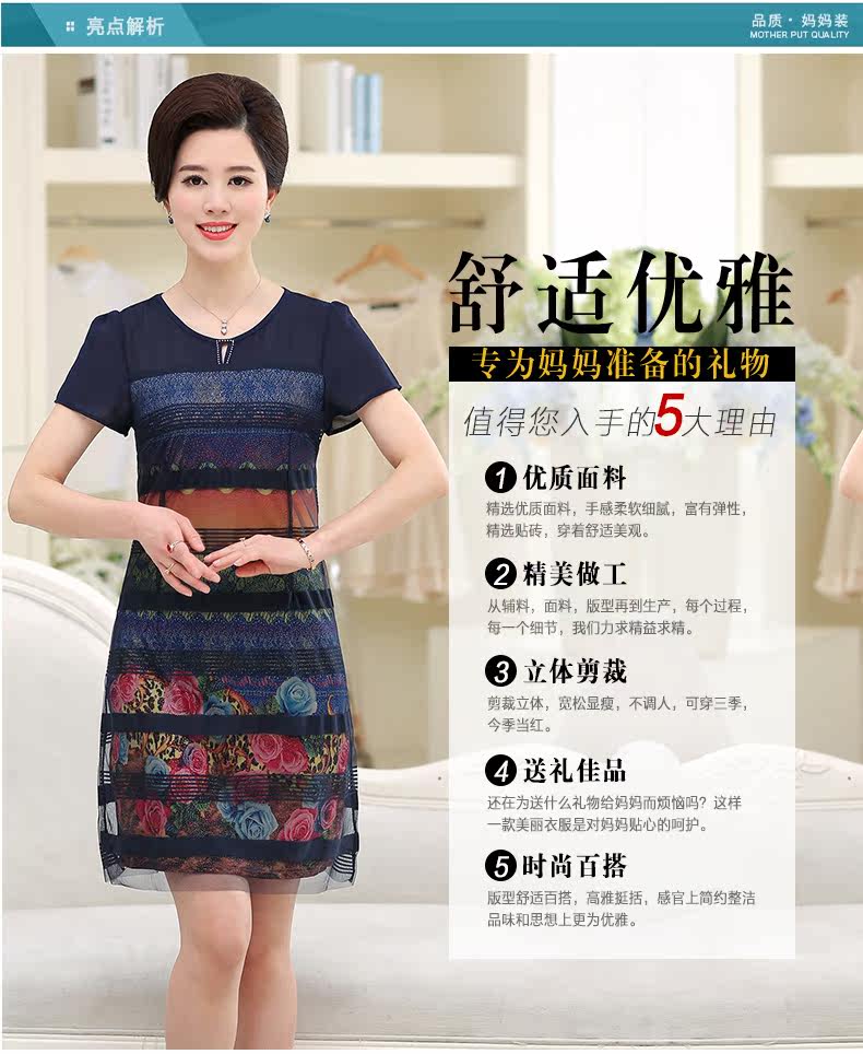 中老年女装夏装连衣裙中年女装夏季裙子40-50岁妈妈装圆领裙子