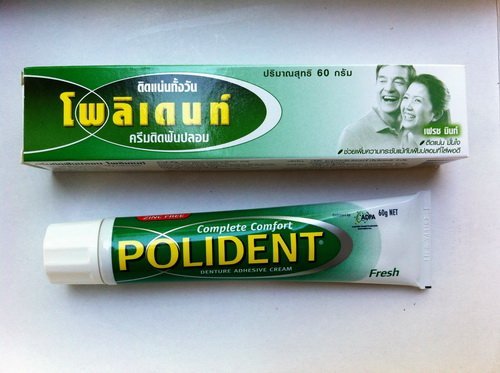 -. Binding : Health and Beauty -. Brand : Polident -. EAN : 8556587871295 -. Feature : Increases bite force by up to 50% / Reduces denture dislodgement whilst eating / Forms a protective seal that reduces food entrapment under the denture / Help to cushion tender tissues during the healing period after tooth extraction. / Prevents food particles getting trapped under the plate. -. Label : Polident -. Manufacturer : Polident -. PackageQuantity : 1 -. ProductGroup : Beauty -. ProductTypeName : HEALTH_PERSONAL_CARE -. Publisher : Polident -. Studio : Polident -. Title : Polident Denture Adhesive Cream 60 G. Thailand Product Free Shipping