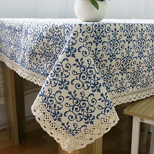 - This beautiful tablecloth features a blue damask pattern with cotton linen fabric, which can blend with any existing home decor