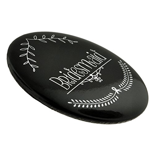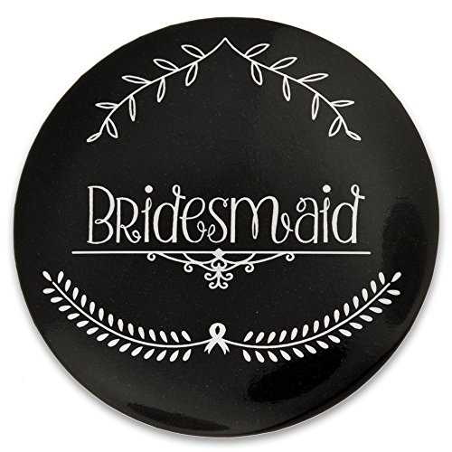Studio : PinMart Publisher : PinMart Binding : Toy Product Description Our fabulous Bridesmaid Button is 2-1/4" round with a durable and glossy black color front side featuring an elegant scripted "Bridesmaid" and pretty graphics in white. The back side is a silver metallic backing with a safety pin back for securing the button to your favorite garment. Each is individually poly bagged. A perfect gift for the bride-to-be to give to her bridal party on her day of the bachelorette party, rehearsal dinner, wedding ceremony or wedding reception. This also makes a great decorative "bow" or "gift topper" for a personal thank you gift at the Bridal shower! Purchase the matching buttons to make perfect party favors and great conversation pieces. 0