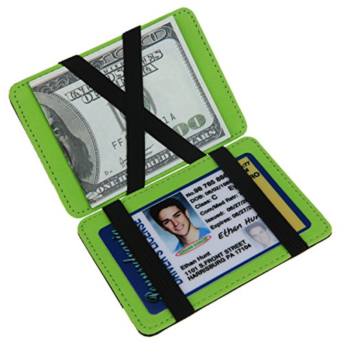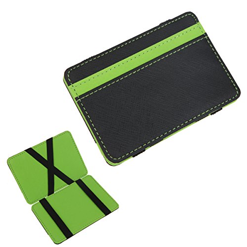 DKER Money Clip Magic Leather Wallet Holder Billfold Credit ID Card Case - Green