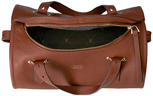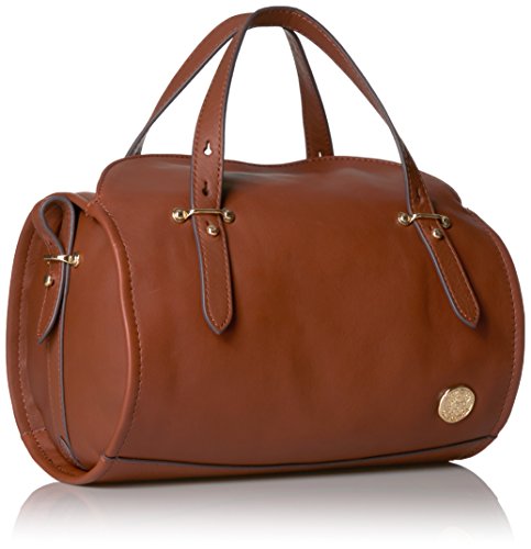 Bring back the sport-chic barrel bag with the modestly-sized Cass small satchel. For women on-the-go, this traveler-inspired purse features a cylindrical shape with natty gold tone finishes and a webbed shoulder strap.