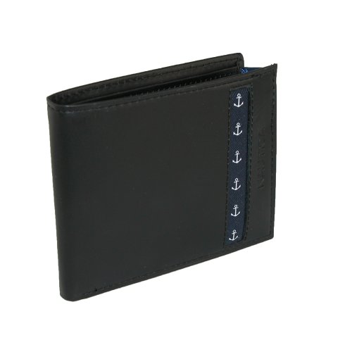 Nautica Gangway passcase wallet with exterior anchor fabric inlay, bill compartments, four credit card pockets, extra storage compartments and removable pass