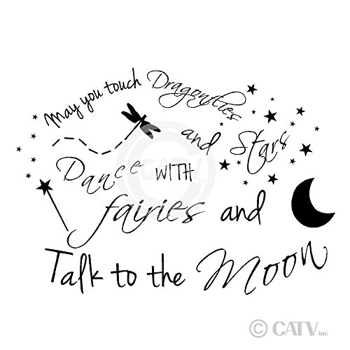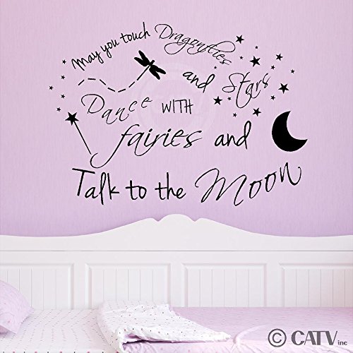 -. Binding : Kitchen -. Brand : Wall Sayings Vinyl Lettering -. Color : Matte Black -. EAN : 0813182016413 -. Feature : Measures 22" H x 31" W / Comes with easy to apply instructions / Can be applied to most walls including textured / Can be removed without damaging walls / High end decorating on a budget -. Label : Wall Sayings Vinyl Lettering -. Manufacturer : Wall Sayings Vinyl Lettering -. Model : 6073890 -. MPN : 6073890 -. PackageQuantity : 1 -. PartNumber : 6073890 -. ProductGroup : Home -. ProductTypeName : HOME -. Publisher : Wall Sayings Vinyl Lettering -. Studio : Wall Sayings Vinyl Lettering -. Title : May You Touch Dragonflies and Stars Dance with Fairies and Talk to the Moon wall saying vinyl lettering home decor decals stickers -. UPC : 813182016413