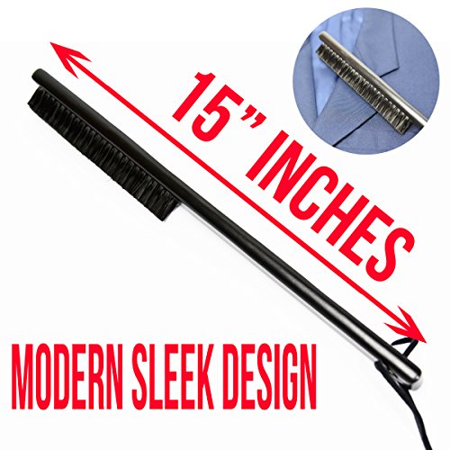 Modern Sleek Clothes Brush 15" Long Wood Handle - Great for Lint, Dust, Pet Hair Removal from Clothes, Furniture, Shoes, Pets and More! (Black)