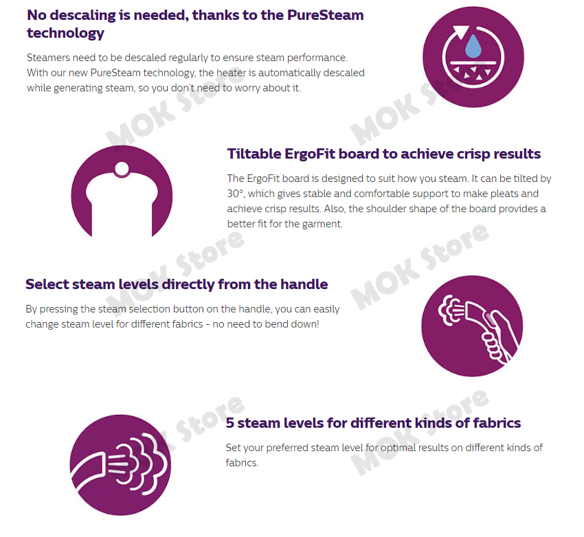 - Soleplate name: SmartFlow Gold steam plate