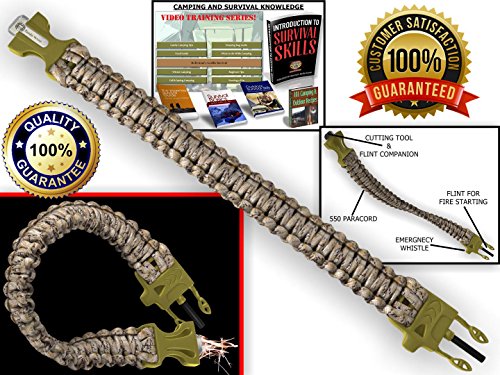 Ready Wrist: 550 Paracord Emergency Bracelet Is a Parachute Cord Survival Bracelet with an Emergency Whistle, Knife Like Cutting Tool, and Flint 100% Lifetime Guarantee (Tan Camo/Tan)