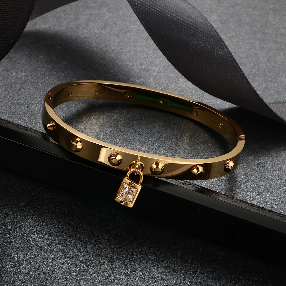 Function4:Gold color bracelet with lock pendant