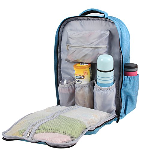 -. Feature : MULTIFUNCTIONAL: If fashionable look and multifunctional organizer are what you're after, look no further than the Damero diaper backpack. Enjoy the happiness of working and travelling with babies. / LIGHTWEIGHT & WATERPROOF: Nylon material and waterproof zippers. Our Special design allows you to set your backpack upright on the ground or table. So you don't have to worry about that the empty backpack would looks flat.-- Bag dimensions: 12.5L'' x 6''W x 16''H, Weigt: 0.78KG / ERGONOMICALLY DESIGNED: Cushioned shoulder straps and the bag shape fit a man's frame but will provide comfortable for Mom when you're on the go with babies. / MULTIPLE POCKETS: laptop/iPad pocket, 5 bottle holders(includes 1 insulated pocket, 2 side pockets), zippered pocket , baby wipes pocket, pen/pencil slots, baby spoon slots, key clips, office supplies organizer and more. 2 large compartments with clamshell opening keep items visible. / Included a padded waterproof changing mat with large surface(22.8 inches x 13.5 inches)