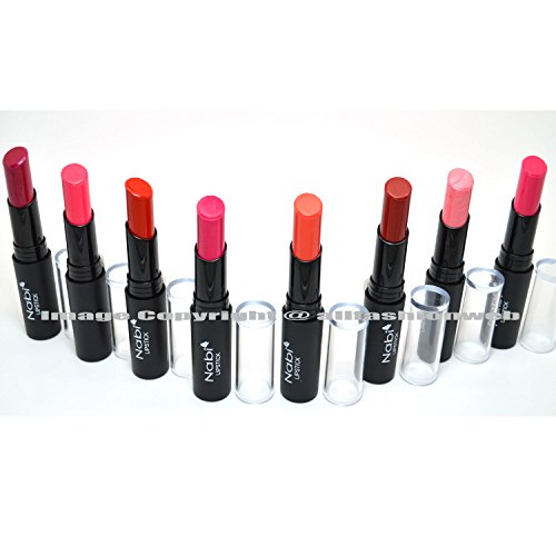 -. Title : Nabi 8 Full Size Lipsticks Red Pink Rose Orange Beautiful Colors Lipstick + Free Earring