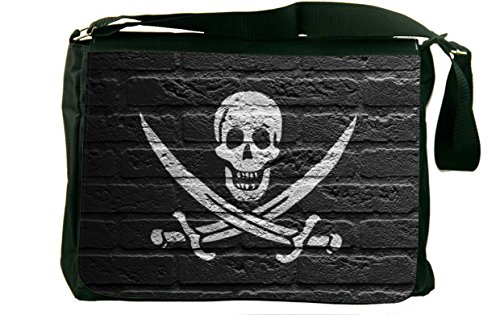 Studio : Rikki Knight LLC Publisher : Rikki Knight LLC Binding : Office Product Product Description Whether from home to the office, on a business trip or to school, the Pirate Flag on brick wall laptop bag notebook bag messenger bag school bag keeps you comfortable and your cargo safe and sound - this bag features pockets on the outside below the flap for your cellphone, pens, iPod, notebook etc. And also a zippered compartment on the inside, with plenty of space to store your textbooks, folders, files, etc. And up to a 14 inch laptop (laptop sleeve sold separately) - the vibrant image on the front is professionally printed and will not fade or peel with time and this bag will surely be an eye catcher wherever you go with it. Disclaimer: all images are printed directly into the material - the Texture of the image will always be a flat surface. Any images that appears to be 3D, textured, or glittery are flat printed images. 0