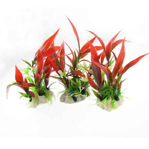 Jardin Plastic Aquarium Plant 3-Piece Decor Aquascaping with Ceramic Base, Red