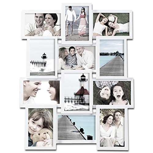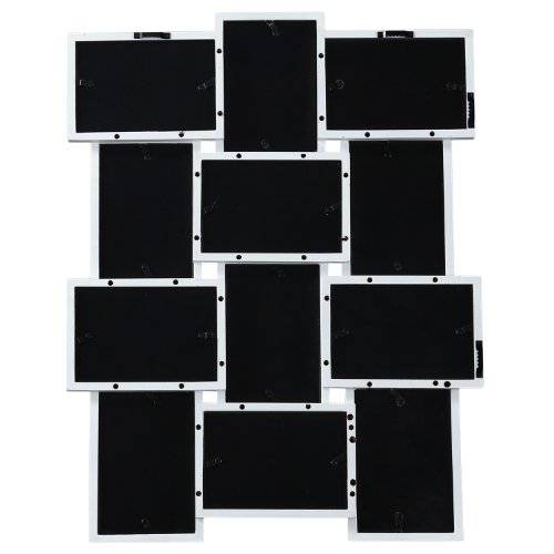 Adeco [PF0174] White Wood Wall Collage Basket-Weave Picture Frame, 12 Openings of 4x6 inches each