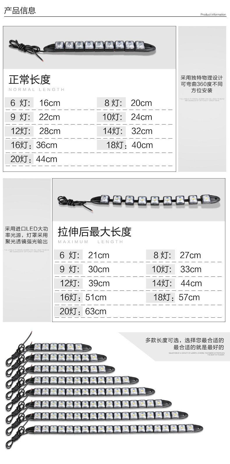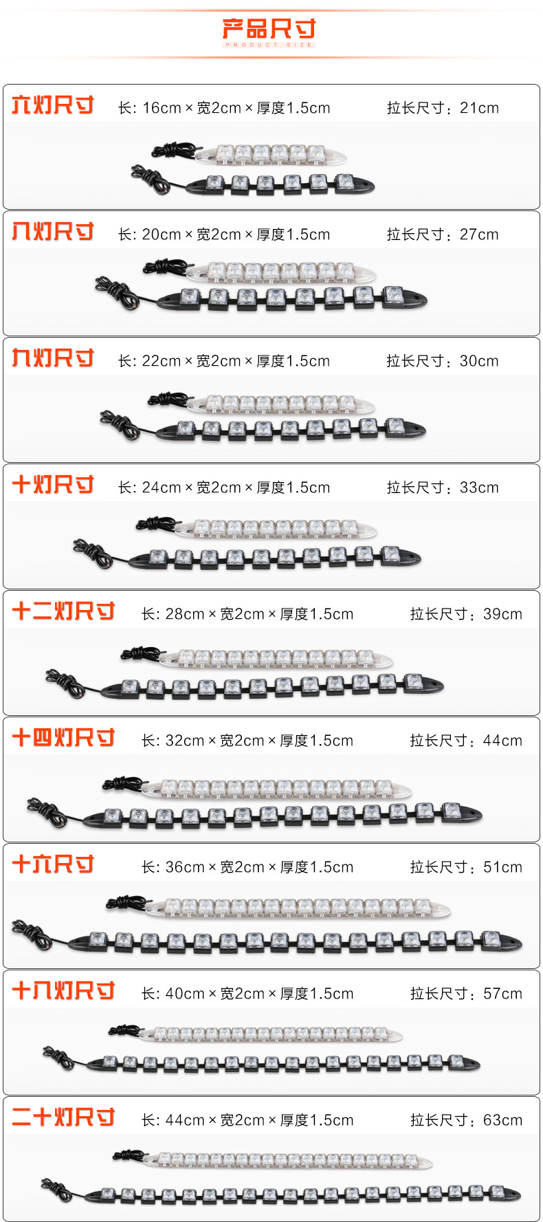 9 Lamp size: length 22cm × width 2cm × thickness 1.5cm