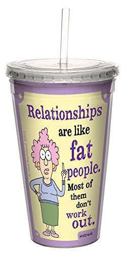 Tree-Free Greetings 16-Ounce Double-Walled Cool Cup with Reusable Straw, Aunty Acid Don't Work Out (CC98480)