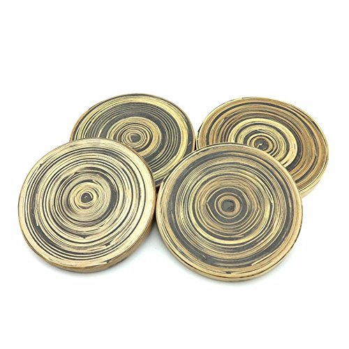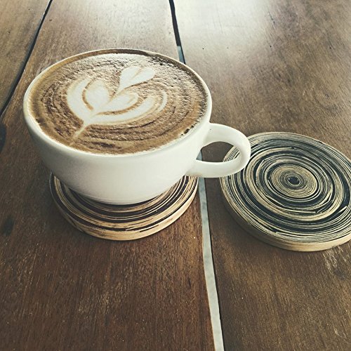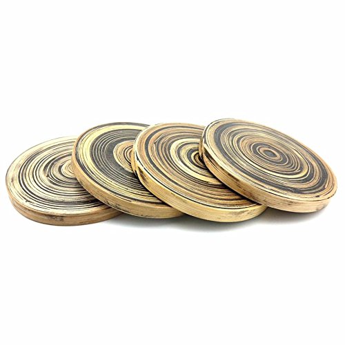 Spun Bamboo Coasters Unique Design Handcrafted in Mulberry Paper storage Box for Hot/Cold drink (Set of 4) (Black)