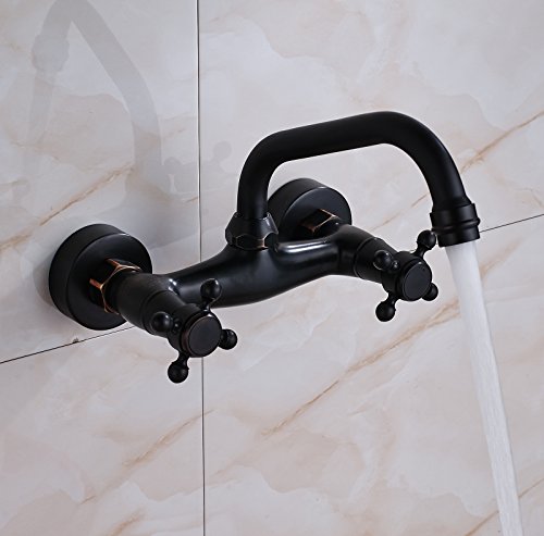 Rozin Bathroom Dual Knobs Vessel Sink Faucet Wall Mounted Basin Mixer Tap Oil Rubbed Bronze