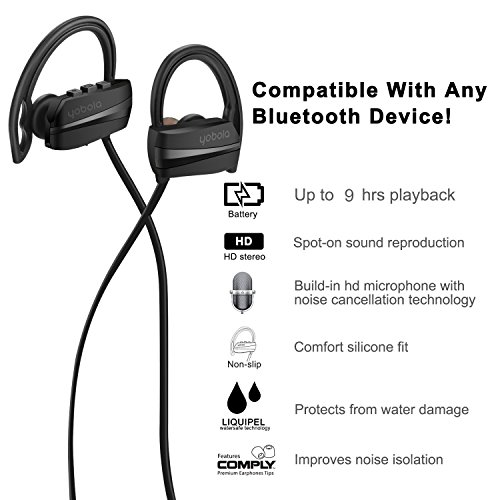 UNIVERSAL COMPATIBILITY AND 2 YEAE WARRANTY : Compatible with most Bluetooth music players, including iPhone, iPod, Apple Watch, Android, PC and Mac.2-Year Manufacturer's Warranty and 30 days no-questions-asked return policy. Value for money guaranteed, Buy the yobola bluetooth headphones worry free today.