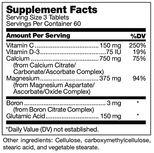 BONE HEALTH: Other nutrients, such as boron, glutamic acid, Vitamin C, and D-3 are also included to assist the body in maintaining healthy bone structure.*