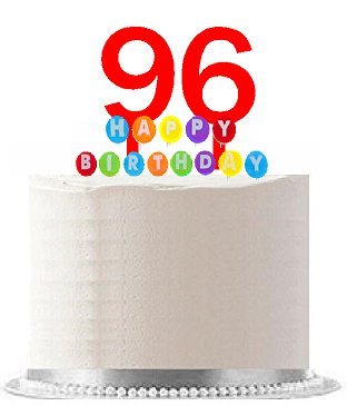 Item#096WCD - Happy 96th Birthday Party Red Cake Topper & Rainbow Candle Stand Elegant Cake Decoration Topper Kit