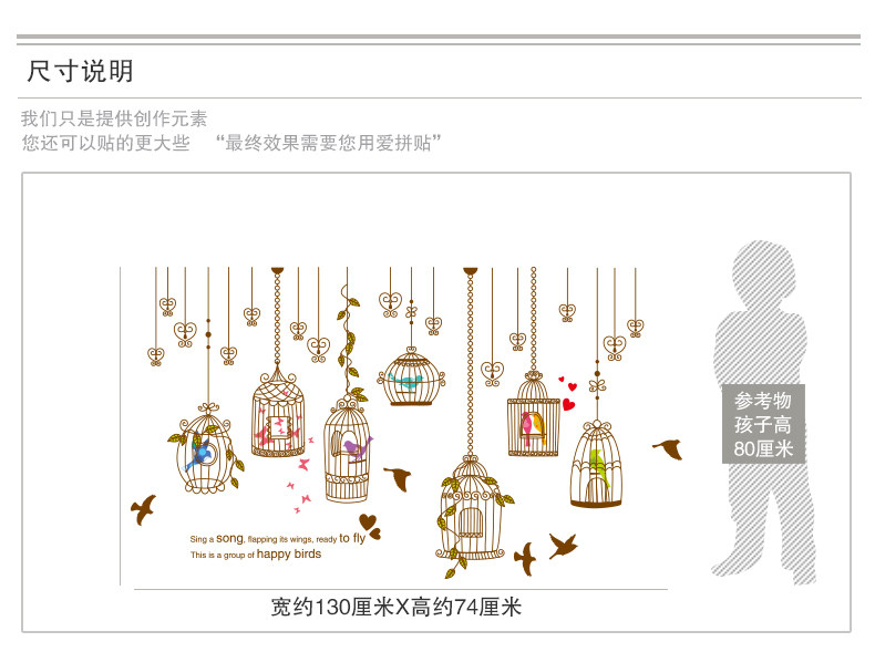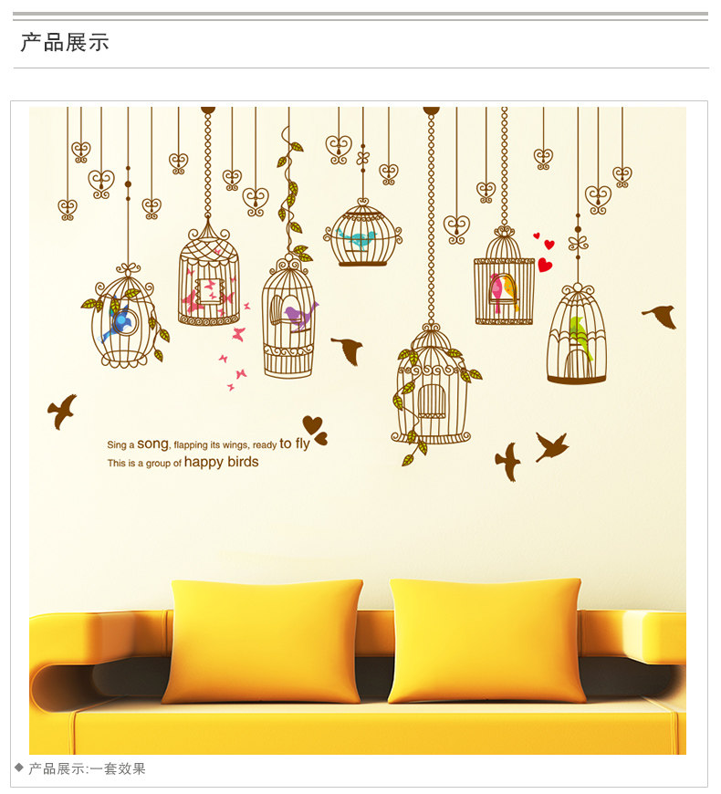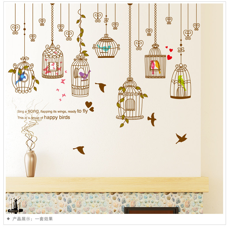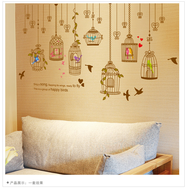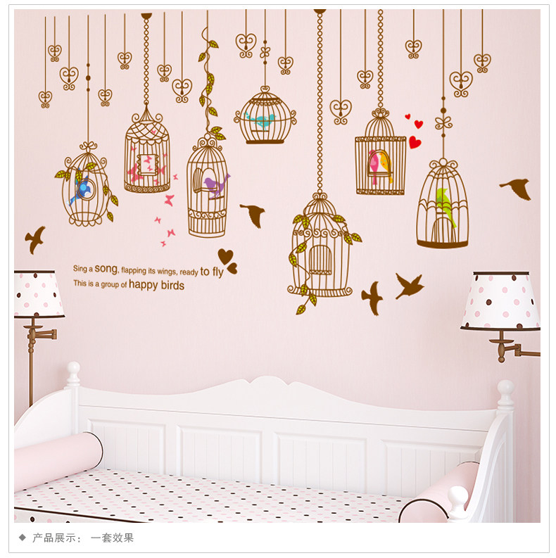 艺术鸟笼墙贴纸贴画卧室床头装饰品客厅沙发背景墙壁布置温馨个性