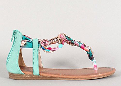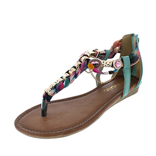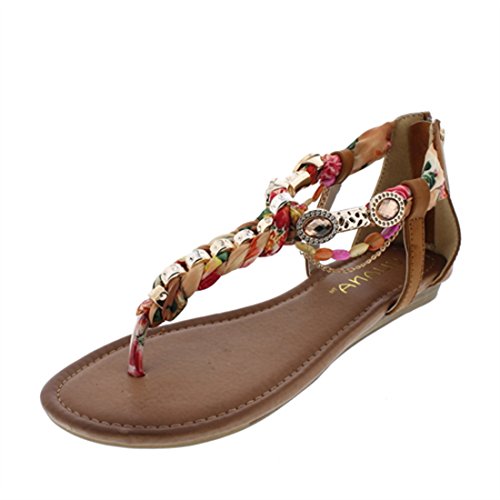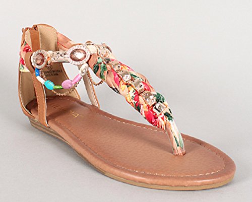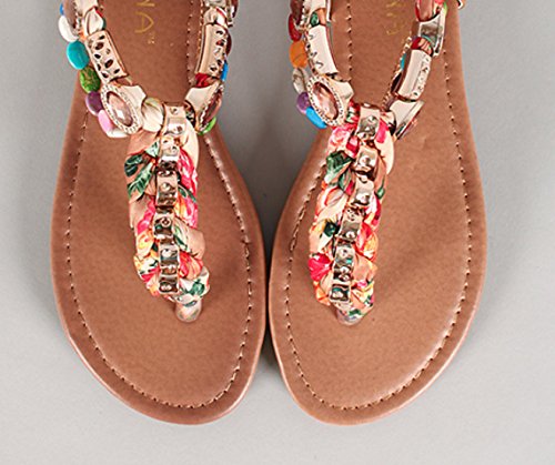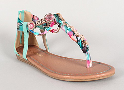 Product DescriptionLiliana Gemstone Hardware Embellished T-strap Flat Sandal Triumph-40
