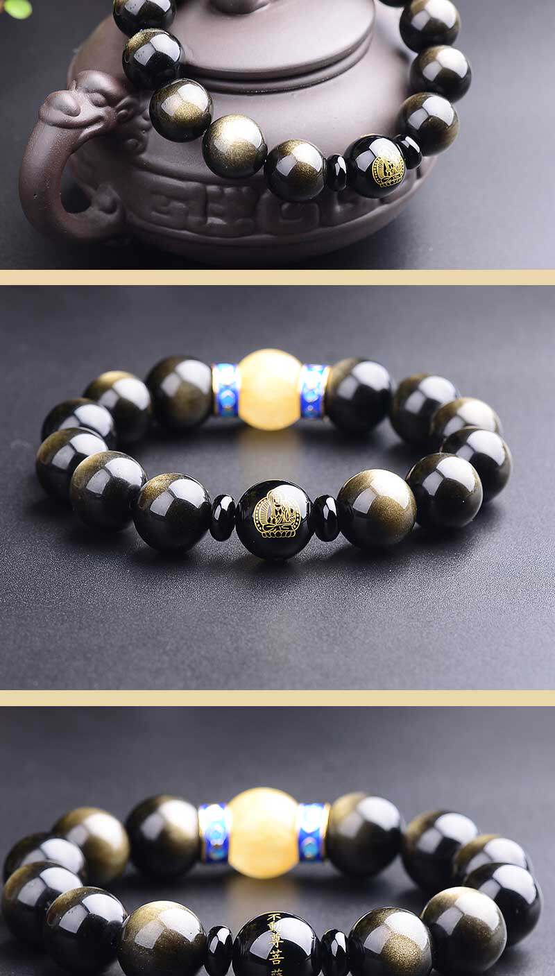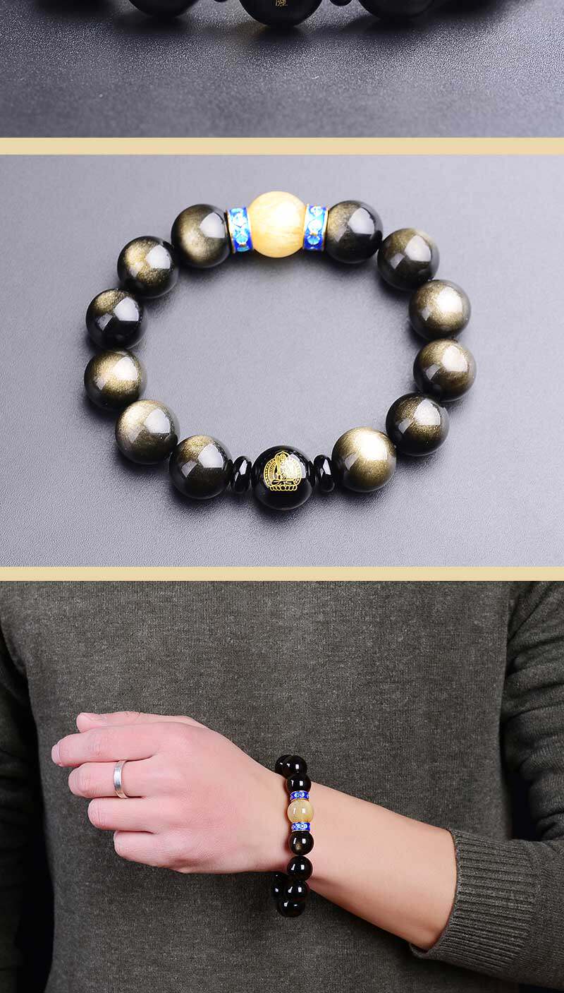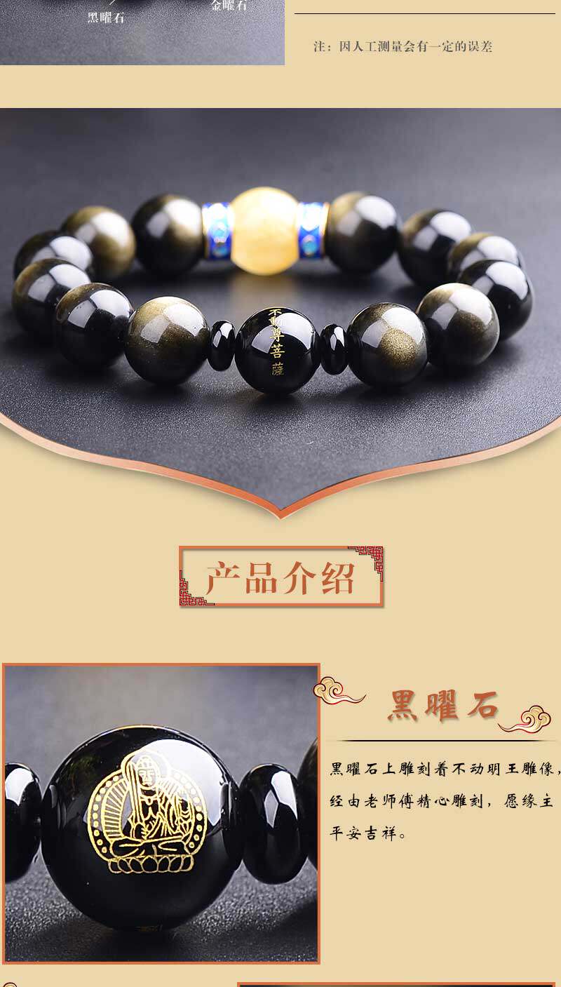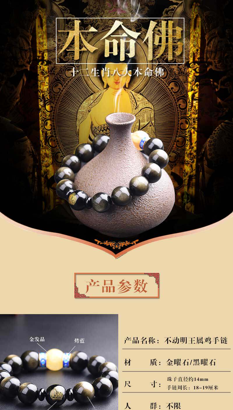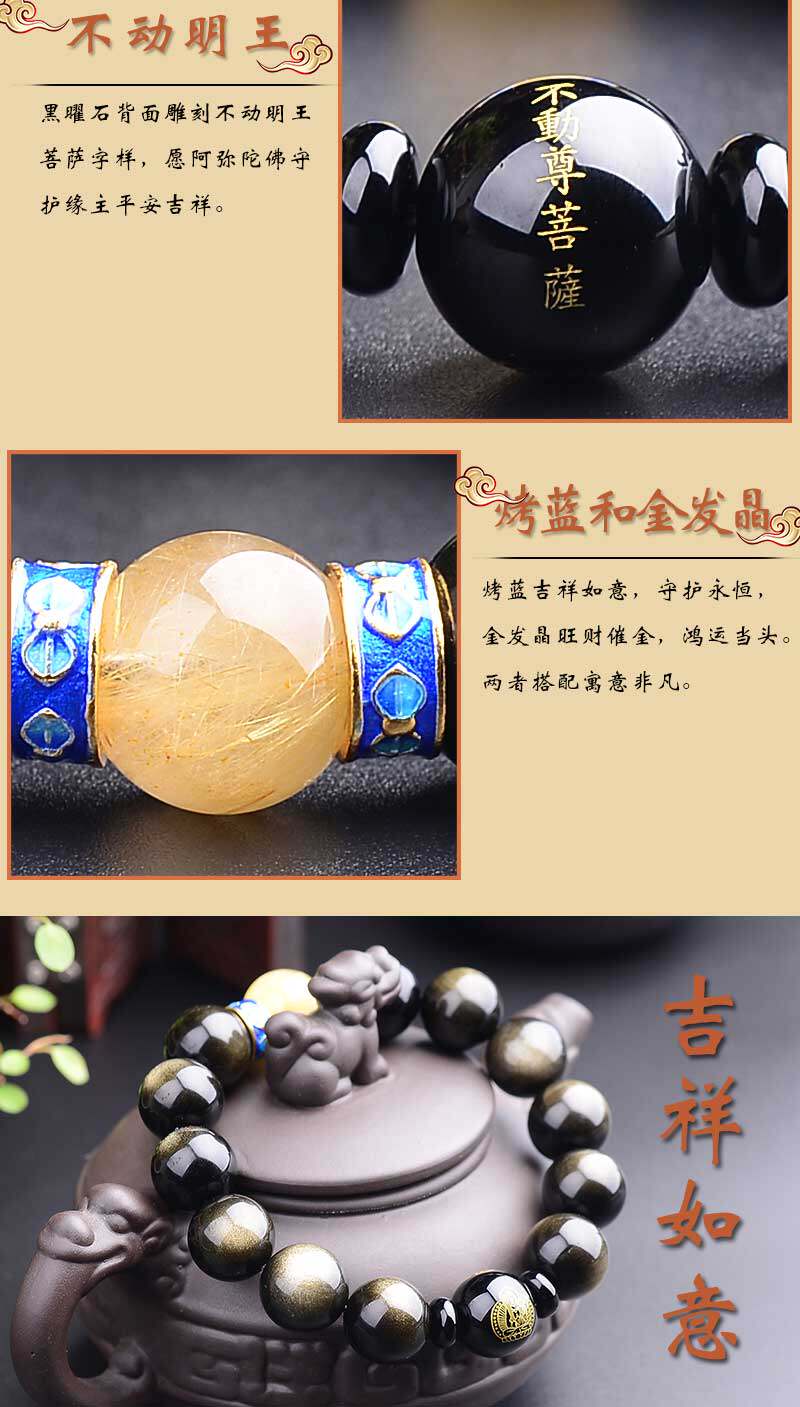 开光 本命佛属鸡【金道安】金曜石发晶手链不动明王菩萨 双金眼